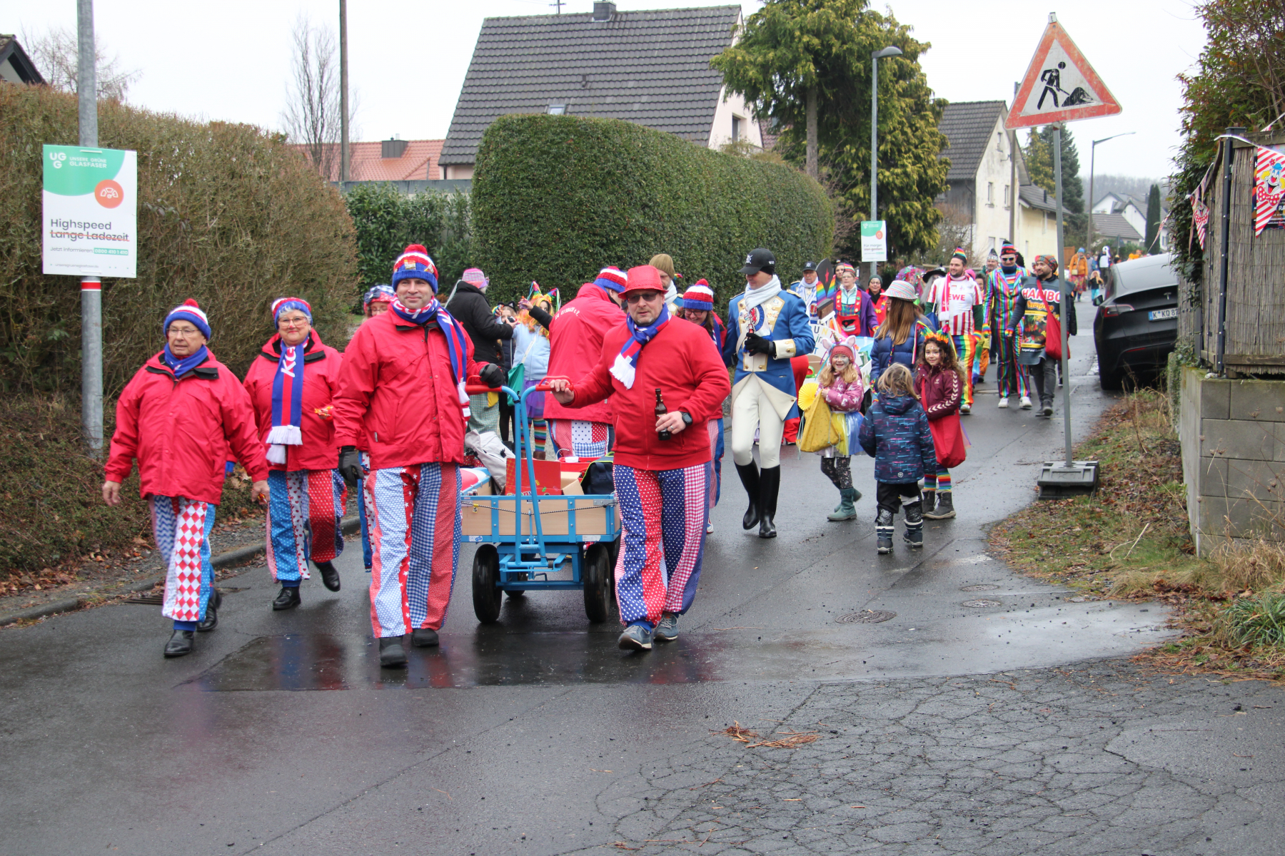 Der übersichtliche Zugweg von 400 Metern war dafür um so gefüllter mit fröhlichen Karnevalsjecken, die sich den vielleicht kleinsten und kürzesten Karnevalsumzug im Rheinland am Rand der Frohnhardter Straße aus ansahen.